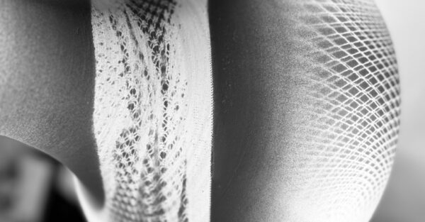 Close up of black and white design, with the appearance of a photo negative